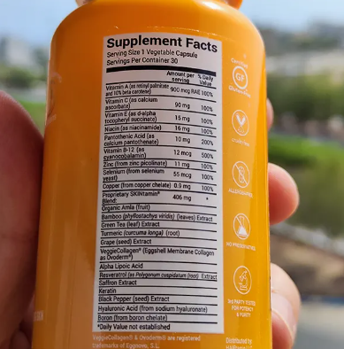 اسکین تامین حاوی کلاژن جوانساز و روشن کننده پوست است، کپسول اسکین تامین برای انوع پوست مناسب و برای خانمها و آقایان قابل مصرف است و میتوانید با تمامی محصولات شرکت هیرتامین استفاده کرد. SKINtamin از نوعی کلاژن (VeggieCollagen) استفاده میکند که از پوسته تخم مرغ تهیه میشود که کاملا ارگانیک میباشد. کپسول تقویت کننده پوست اسکین تامین، حاوی انواع ویتامین و مواد معدنی شاهکار دیگری از برند هیرتامین میباشد که یک تقویت کننده پوست و کلاژن ساز میباشد.