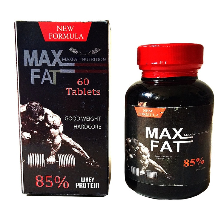 قرص چاقی مکس فت 85 درصد پروتئین وی ساخت آمریکا (MAX FAT) بسته 60 عددی دارای 85% پروتئین وی (WHEY) مخصوص بدنسازی و عضلهسازی، افزایش انرژی، حجم دهی عضلات.