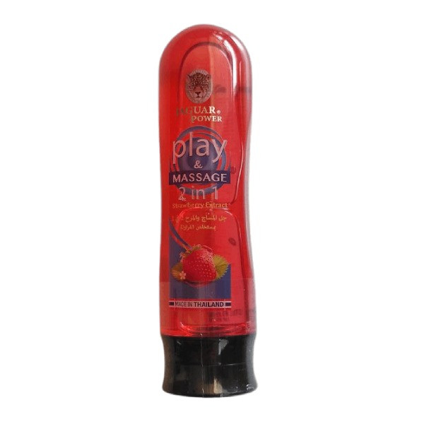 Jaguar Power dual-purpose massage gel and lubricant with strawberry scent, made in Thailand (the highest quality massage gel)